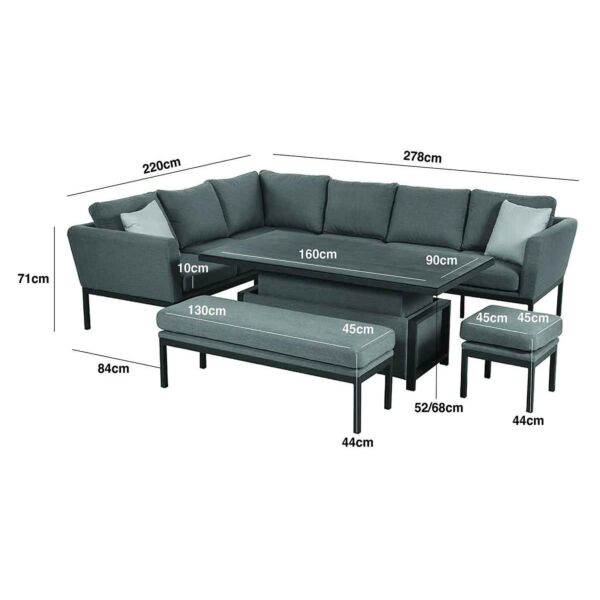 Maze Pulse Outdoor Fabric Rectangular Corner Dining Set with Adjustable Table - Charcoal